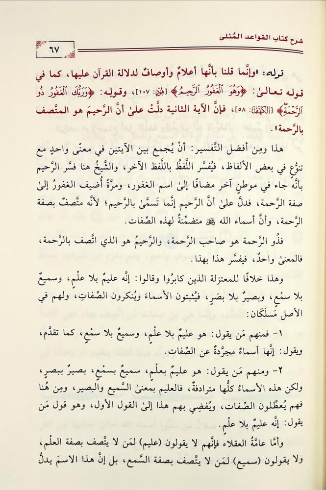 كتاب «القواعد المثلى في صفات الله وأسمائه الحسنى» لابن عثيمين